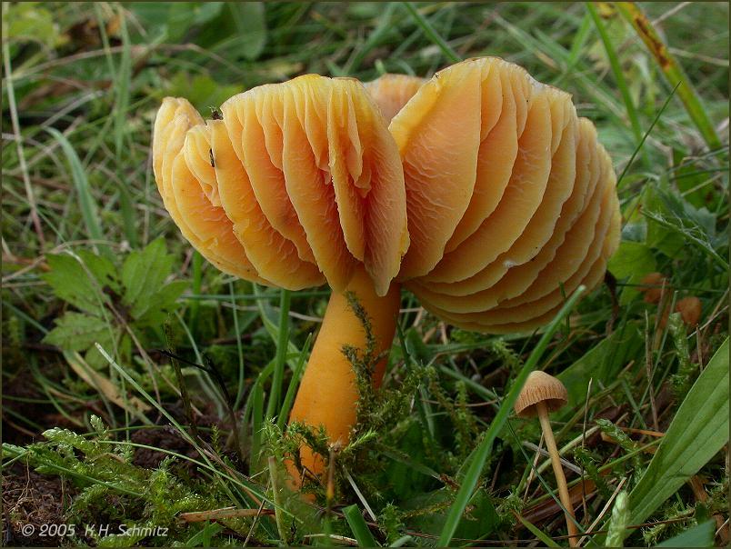 : servus, : mein Vorschlag wäre Hygrocybe obrussea/quieta. Auf deutsch glaube ich