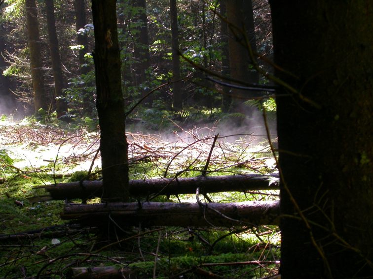 Nein hier brennt es nicht, es dampft! Bei einer Umgebungstemperatur von 16° muss der Boden recht kalt sein.
