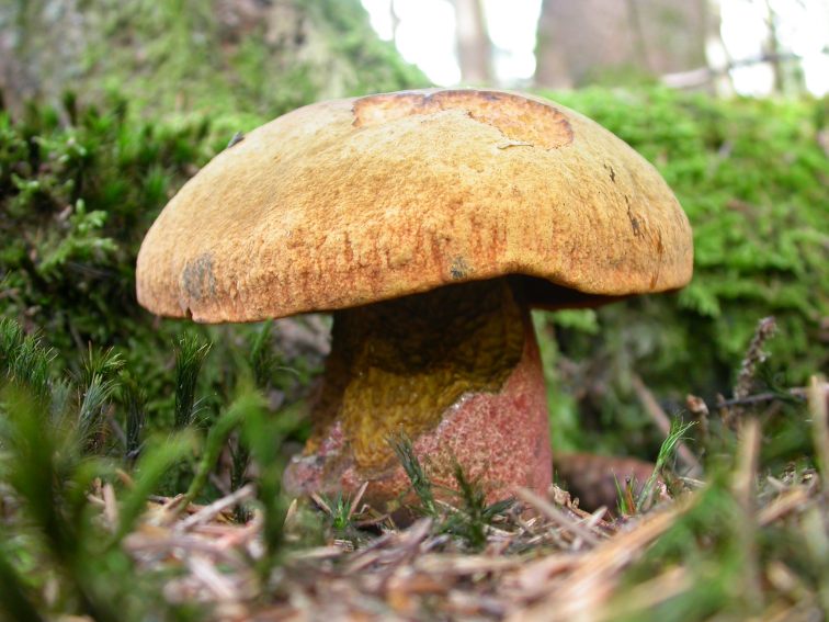 Der schönste Gelbhütige Flockenstielige Hexenröhrling stand ganz dicht bei einer Fichte.