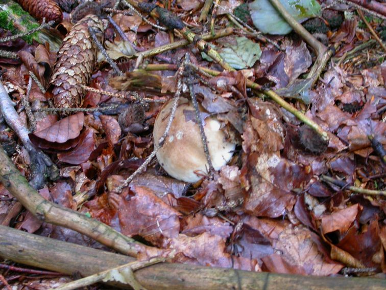 Oh, endlich ein Steinpilz, der ganz normal im Wald steht!