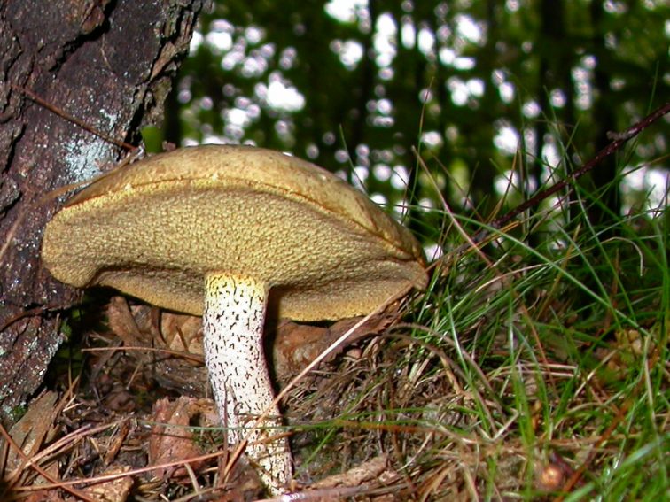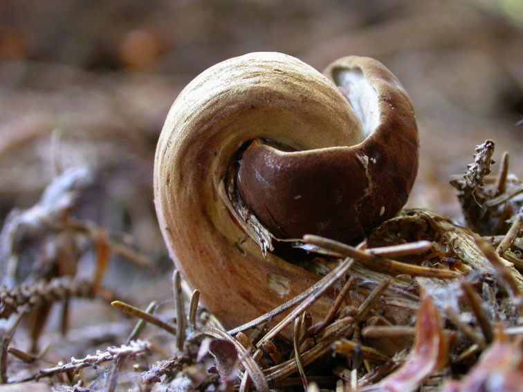 Recht trocken war es, ein Maronenröhrling war auf der Flucht. Zurück in den Boden.