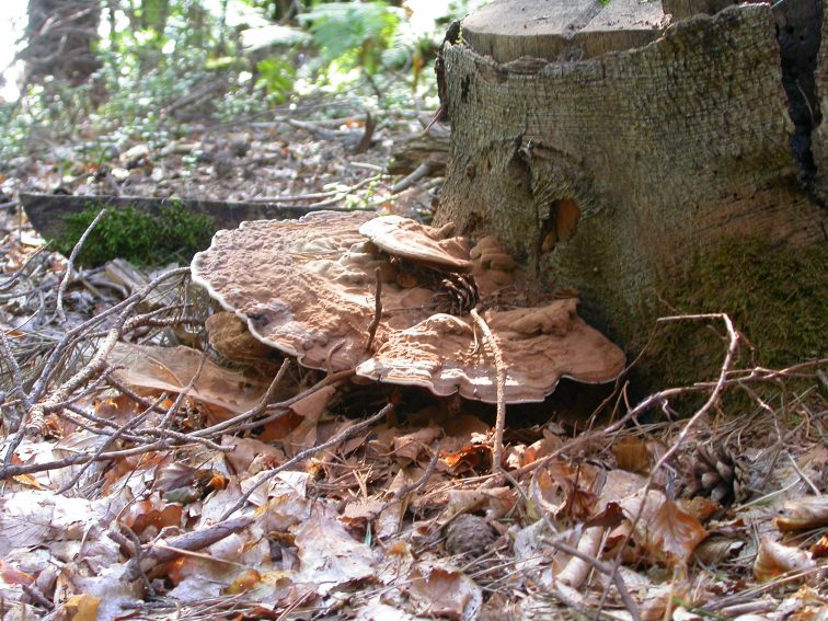 Dieser flache Lackporling war über 30 cm breit und färbte mit seinen Sporen die Umgebung.