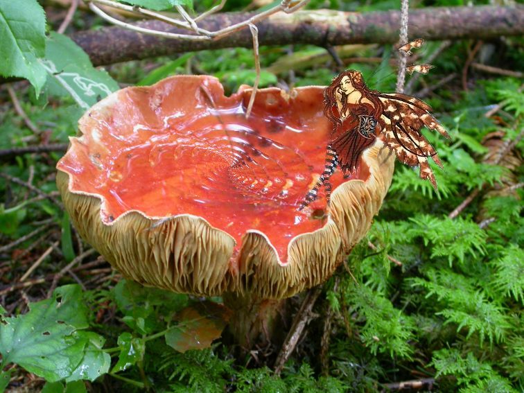 Kleine Pilzbadewannen gibt es zur Zeit oft. Ich fotografiere sie gerne.