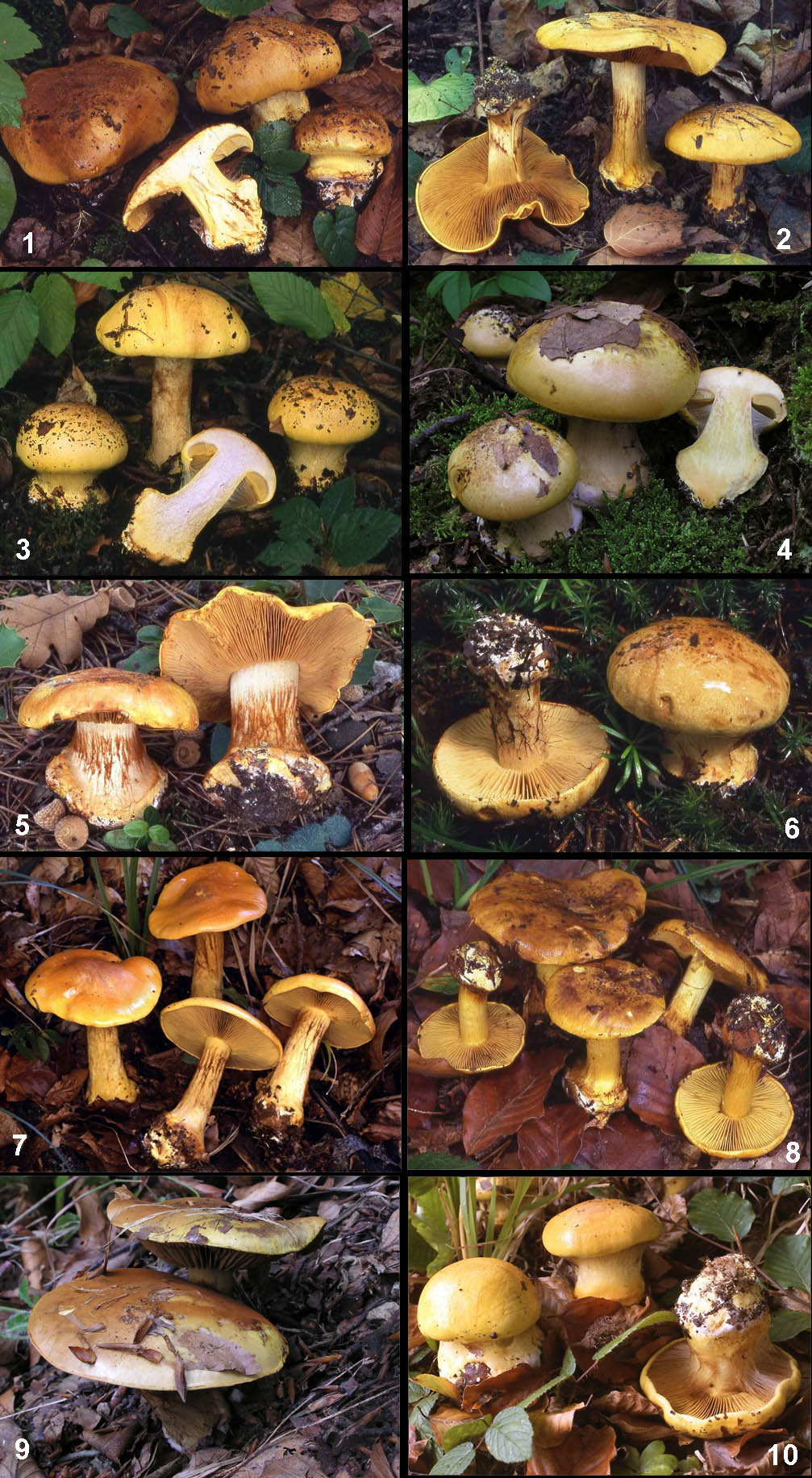 Hallo Marc, C. elegantissimus (aurantioturbinatus) ohne Kenntnis der Mikroskopie zu bestimmen ist aber ganz schön schwierig. Das traue ich mir also kaum zu und ich kenne schon ein paar Schleimköpfe. Ich muss immer nach den großen Sporen schauen um mir sicher zu sein. Anschließend mal 10 Bilder von insgesamt 6 Arten von Klumpfüßen, die alle mehr oder weniger nahe mit C. elegantissimus verwandt sind.