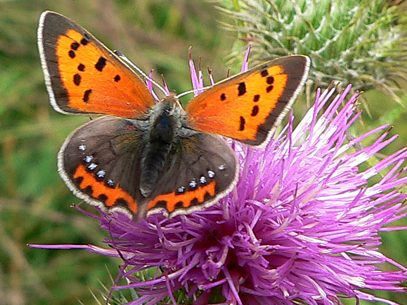 : Deinen Schmetterling, Lycaena phlaeas (Kleiner Feuerfalter), ziert eine