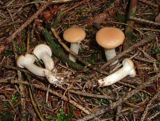 Hallo allerseits, mehrere dieser Kinderstuben fand ich vorgestern in einer Fichtenschonung bei Hannover. Angenehmer Geruch und max. 2 cm Hut-Ø - als unverbindlicher Tip wurde Lepista flaccida in den Raum geworfen, ich finde, das paßt sehr gut. Was meint Ihr? Viele Grüße,