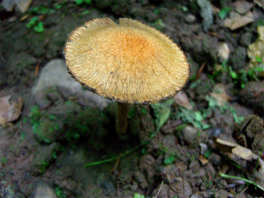 könnte das ein kupferschuppiger dickfuß, cortinarius spilomeus, sein? die orangeroten fetzen am hutrand und der stielspitze fand ich persönlich sehr hübsch :) ..die lamellen hatten einen etwa violett-beige-farbenen schimmer...