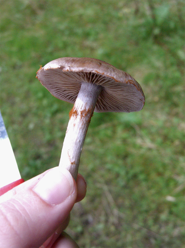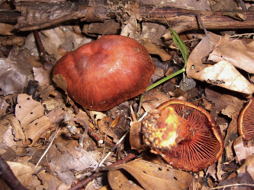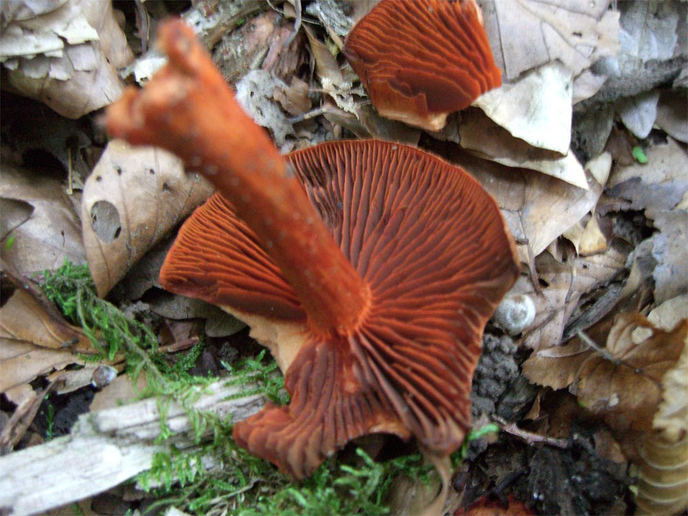 hier haben wir auf den zinnoberroten hautkopf, cortinarius cinnabarinus, getippt. ich glaube, er roch auch ziemlich stark nach rettich: