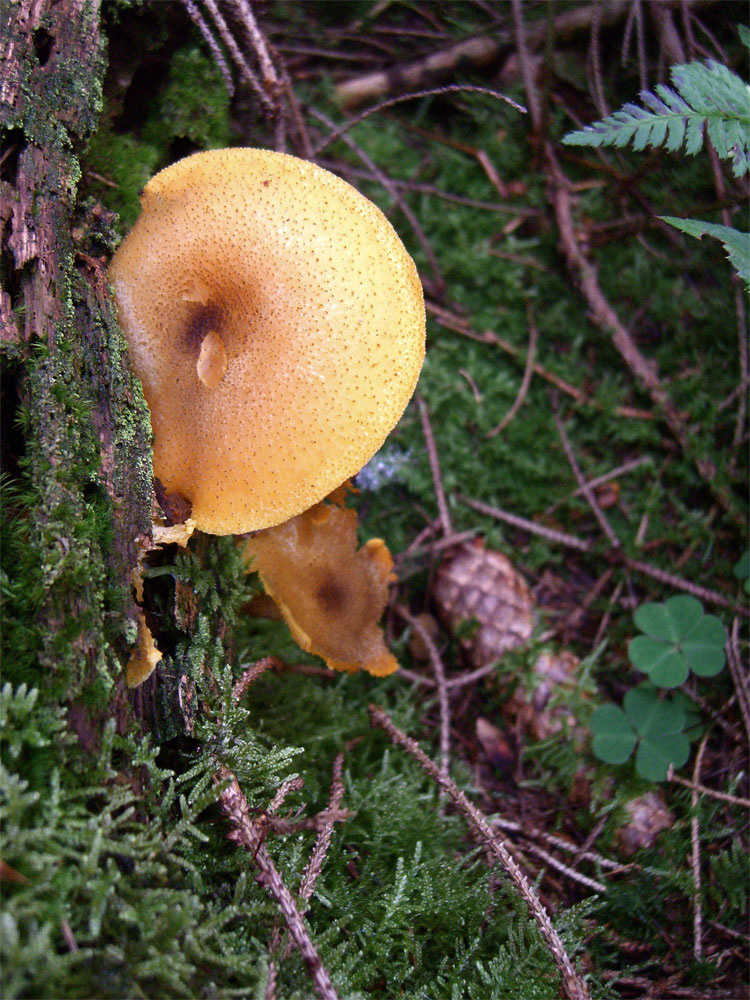 dies ist vermutlich der olivgelbe holzritterling, tricholomopsis decora.