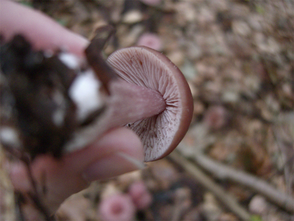 dieser pilz war ein weiterer erstfund, und dazu noch ein so schöner! leider ist das alles schon ein weilchen her.. ich meine mich zu erinnern, dass er stark nach rettich roch. vom erscheinungsbild her tippe ich auf den rosa rettichhelmling..? stiel seidig-faserig, hut hygrophan... im zweiten bild weiter oben sieht man noch so halb die hüte einiger älterer exemplare...