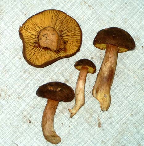 Hallo Pilzfreunde, Meine Frau war heute wieder ausgiebig "in den Pilzen" und hat dabei drei-vier sehr schöne Exemplare mitgebracht, die ich mit keinem meiner 5 Pilzbücher eindeutig identifizieren kann. Die Beschreibung ist ganz einfach: Sieht genauso aus wie eine Marone, hat aber keine Röhren sondern Blätter unter dem Hut. Also, dunkelbrauner samtiger leicht eingerollter Hut, gerader beige-gelblicher Stiel (zum Hut hin leicht rötlich-braun mit faserigen Streifen), dunkel-dottergelbe Lamellen, die kaum am Stiel herablaufen. Werden nicht blau beim Berühren oder Drücken. Essen werden wir die natürlich nicht, bevor wir eindeutig wissen, um was es sich handelt. Wie gesagt, ein Maronenröhling nur mit Lamellen anstatt Röhren. Was ist das wohl? Hat jemand eine Idee? Grüße Peter