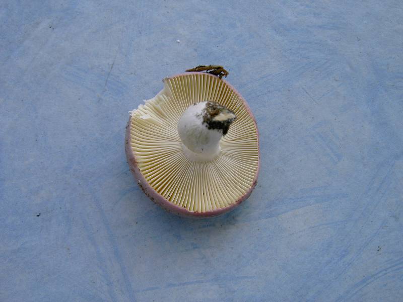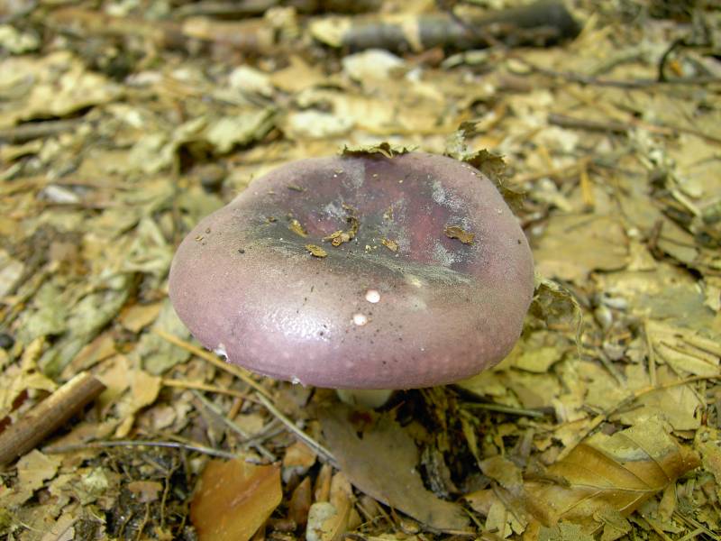Der Hut ist violett, in der Mitte dunkler. Lamellen gelblich und brüchig. Geruch angenehm, Geschmack mild.
