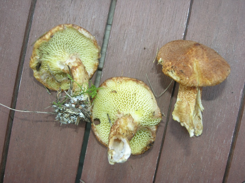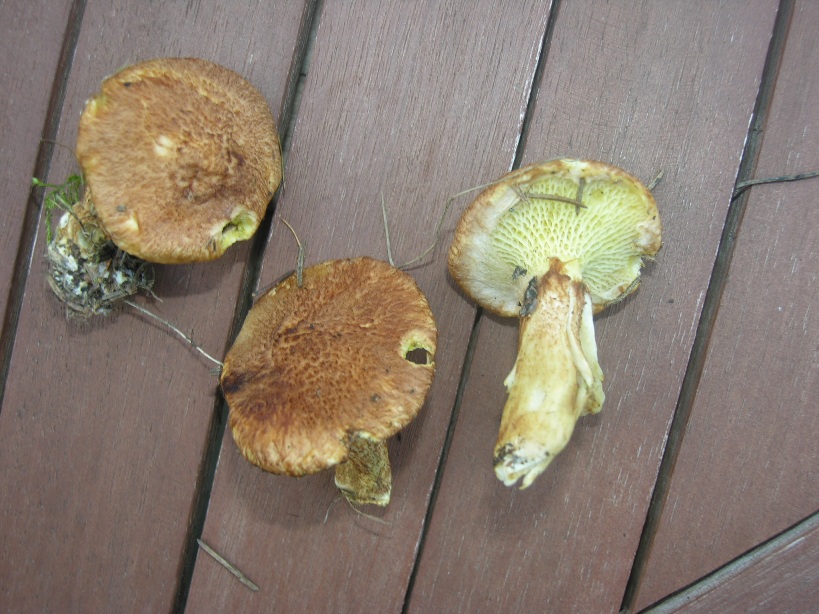 heute haben wir im Tharandter Wald folgende Pilze (Röhrlinge?) gefunden, die mein Pilzbuch nicht zu kennen scheint. Ein paar Meter weiter haben wir einige Goldröhrlinge unter Lärchen gefunden. Insgesamt Nadelwald mit ein paar eingemischten Laubbäumen. Hatte leider die Kamera nicht dabei um die Umgebung zu fotografieren. Der Hut ist leicht buckelig und geschuppt, der kleinere war unterm Hut mit einem Häutchen bedeckt, das sich schon ein bisschen gelöst hat. Habt ihr eine Idee um was es sich handeln könnte.