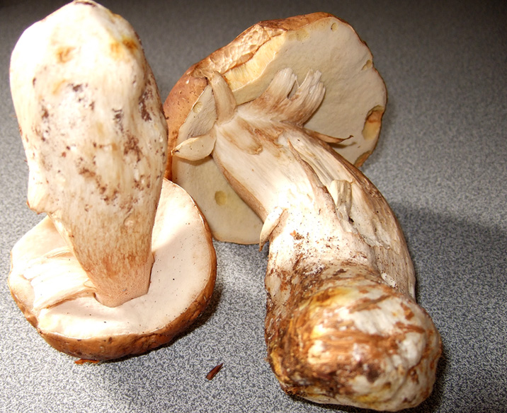 Hallo Olly, hallo Elfi, hallo Gernot, na da bin ich ja beruhigt, wenn das im Normalbereich liegt. Habe jetzt noch schnell ein Bild gemacht, wieder mal mit etwas unscharfen Bildbereichen. Kommt halt davon wenn man mit der angeblich besten Kompaktkamera Pilze im Makrobereich fotografiert, grrrr. @Gernot Für mich sieht es auch so aus, als wären die Verfärbungen an den Fraßstellen. Wäre es möglich dies als Abwehrreaktion des Pilzes zu deuten, quasi um die Eindringlinge im Zaum zu halten? Das Viechzeugs nimmt trotz der nächtlichen Abkühlung, auf um die 6 °C, nicht merkbar ab. Ich hatte noch zwei Steinpilzkinder getroffen, von außen hatten ihnen diese schleimigen Mollusken schon heftig zugesetzt, dass nur noch die Hälfte da war. Der Stiel sah (äußerlich) gut aus, als ich ihn anfasste, fühlte er sich hohl an. Also die Kleinen auch schon total von Maden durchfressen. Sowas lass ich dann mal gleich stehen. @Elfi Die stammen übrigens aus dem Hafenlohrtal, warste da nicht auch schon, ;-))) Vielleicht läuft man sich da mal (nächstes Jahr?) übern Weg, maybe. @all
