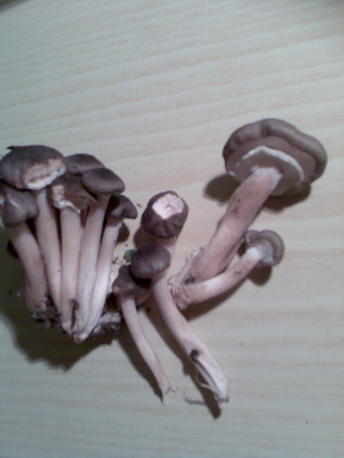 Liebe Pilzgemeinde, kann mir jemand einen Tipp geben, in welche Richtung dieser Pilz geht. Ich bitte zum voraus um Entschuldigung bezüglich der Bildqualität (Foto mit Natel). Auf den ersten Blick dachte ich an einen Büschelrasling, aber der Ring deutet eher auf einen Hallimasch hin, aber mit dieser gleichmässig dunkelbraunen Farbe, und ohne Schüppchen? Kurze Beschreibung: büscheliges Wachstum (auf vergrabenem Holz), Hut: dunkelbraun, knoperlig, lederig, zäh, keine Schüppchen, Stiel: knorpelig, verdreht, leichter rosaton, mit persitentem, weissem Ring, Lamellen: weiss, Sporen: hyalin, 6x8 (Form und Grösse wie bei Armillaria-Arten), Geruch: zuerst pilzig, dann unangenehm. Danke für Tipps Gruss