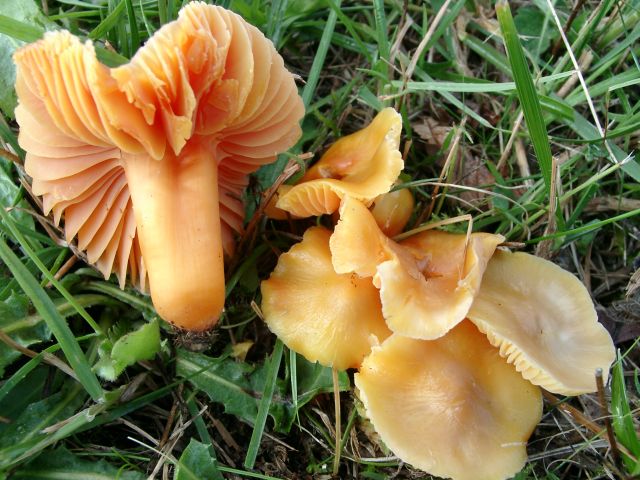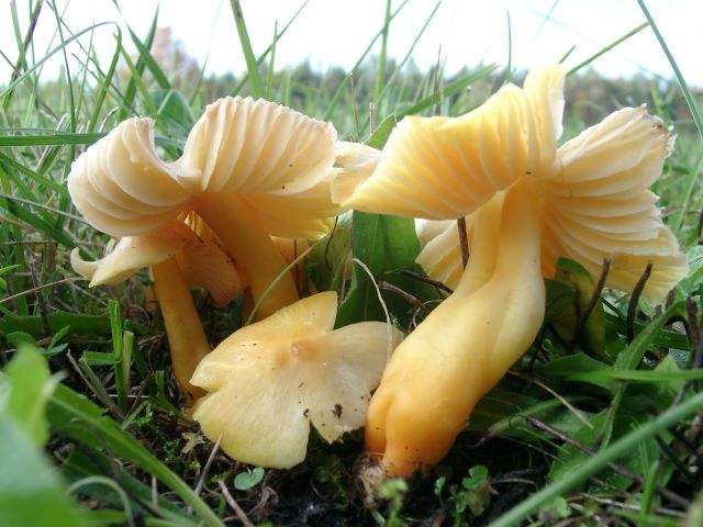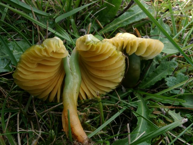 hier treten die Saftlinge schon etwas in den Hintergrund. Den Wiesen- und den weißen Ellerling gabs auch, selbst der Weiße Wiesen- (H. pratensis var pallida oder H. berkelei) war vertreten. Vereinzelt auch H. chlorophana (Stumpfer Saftling) und H. insipida (Gelbrandiger S.)