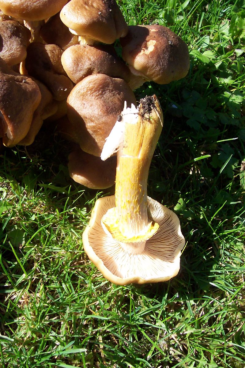 Hallo zusammen, bin Neuling in Sachen 'Pilze' und würde mich aus aktuellem Anlaß über eine Expertenmeinung freuen: Folgendes Bild entstand im Garten, wo die Pilze seit kurzem büschelweise (besonders unter Quittenbaum und Walnußwurzel) wachsen. Bei der Bestimmung bin ich mir insofern unsicher, weil die Hüte keinerlei Schuppen haben. Ansonsten: Mitte buckelig und dunkler, weiß/graue Sporen, 'Stielkrempe'...Wer kann helfen? Besten Dank und Gruß, Andreas