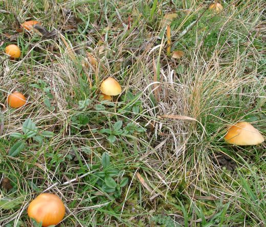 wir haben jetzt vor allem an den Plätzen nach Saftlingen gesucht, wo wir zuvor Orchideen gefunden hatten. Oft wachsen die tatsächlich in denselben Gebieten, allerdings bevorzugen die Orchideen eher die sonnenseitigen und die Saftlinge eher die Schattenhänge. ciao, michel