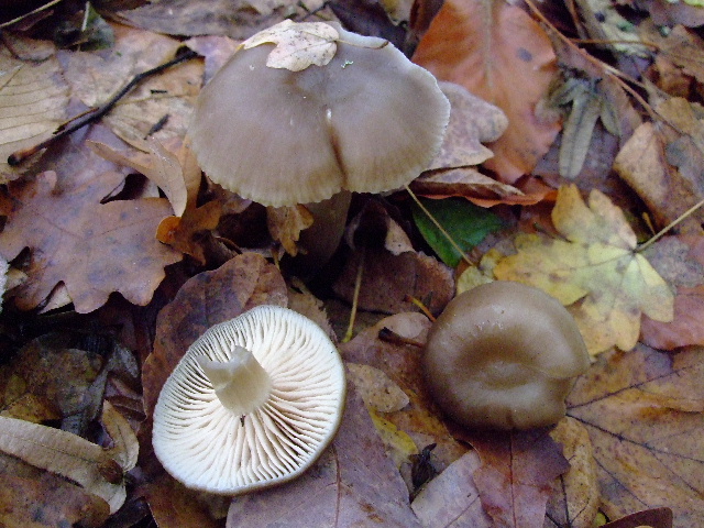 Hallo zusammen, da ich noch mit meiner neuen Knipse übe, ist das Foto nicht so besonders geworden. Immerhin ohne Blitz, und vielleicht kann man noch genug erkennen. Die Gruppe habe ich eingesackt, falls Nachfragen kommen. Ich vermute hier einen Rötling, aber was Passendes habe ich nicht gefunden. Hut: genabelt, radialfaserig, am Rand gerippt, Ø vom größten Ex. 6,5 cm Lamellen: breit, entfernt stehend und untermischt, ausgebuchtet angewachsen, Schneide glatt, bis heute in Stielfarbe nachgedunkelt, Sporenpulver rosa Stiel: gekniet(?), leicht flach und ein bischen verdreht, brüchig, wattig ausgestopft, längsfaserig und auf ganzer Länge (außer Stielspitze, hier weißlich) etwas heller als Hutfarbe Geruch: chemisch, wie Schwimmbecken (für mich jedenfalls) Geschmack: wanzig, tranig, unangenehm (ich kann es nicht besser beschreiben) Standort: Gestern in der Umgebung von Hannover, am Rande eines Buchen-Hainbuchen-Eichen-Waldes unter Esche, feucht, leicht moorig Wer kann weiter helfen? Viele Grüße,