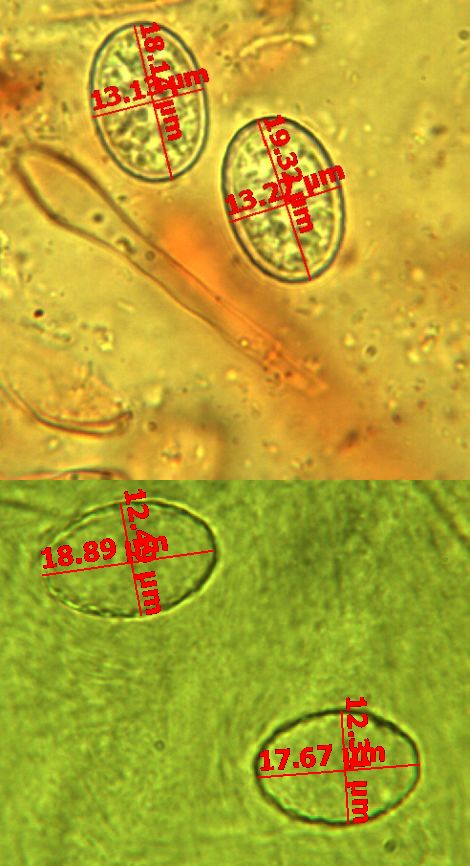 Hallo zusammen, erst mal vielen Dank für Eure Hilfe! Ja, das Präparat war von demselben Apothezium! Ich war auch etwas erstaunt über den Unterschied. Ich habe jetzt den Gegenvergleich am Exsikkat gemacht, der Unterschied ist nicht mehr so stark, aber die Sporen in Kongo sind docht leicht grösser und etwas runder als in Melzer.