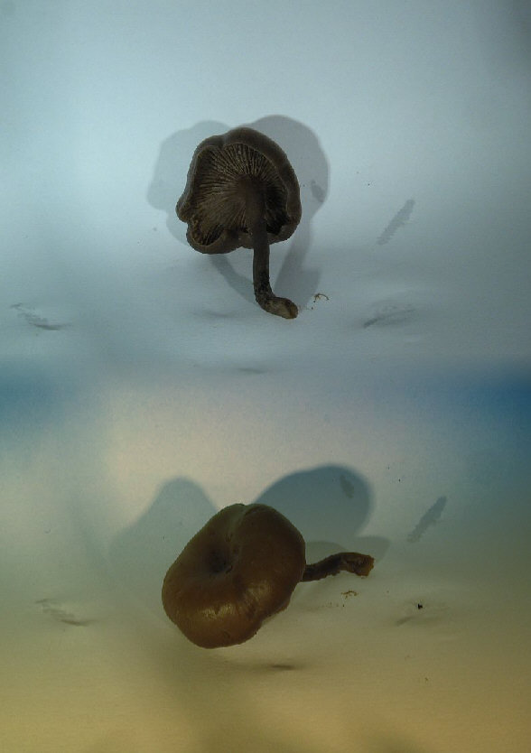 Hallo zusammen! Ist ja mittlerweile wenig los hier. Da hätte ich dann doch ein Pilzchen von heute, dass ich zunächst mal gar nicht zuordnen kann, noch nicht mal einer Gattung. Gefunden an einer Wegböschung unter Fichte auf saurem Boden. Habitus trichterlingsartig. Der ganze Fruchtkörper ist braungräulich. Hutdurchmesser ca. 3,5 cm. Lamellenschneiden mit Kristallen? besetzt. Hat jemand einen Tip, in welche Richtung ich suchen muss? Wegen dem Sauwetter nur mehr oder weniger gute Indoorfotos Grüße