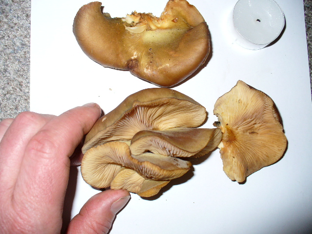 Hallo, war heute am Waldrand und im Fichtenwald. An totem Holunder (Sambucus nigra) gab es Samtfußrüblinge und Judasohren. An einer toten Birke (Betula pendula) fand ich den Seitling den ich nicht kenne. Kann mir jemand helfen ?