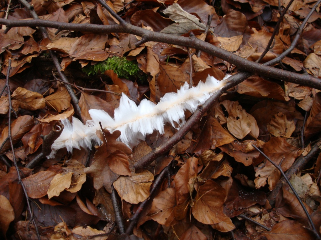 Liebe Experten, wer kann mir mit dem Gattungsnamen des Pilzes auf dem Foto weiterhelfen. Ich finde ihn jedes Jahr bei bestimmten Wetterlagen (Nebel, Bodenfrost) im Dezember auf Altholz von Rotbuche. Die Strukturen werden nur durch das gefrorenen Wasser sichtbar, verbringt man den Pilz ins Warme ist die ganze Schönheit blitzschnell dahin..........Schönen Gruß und danke im voraus