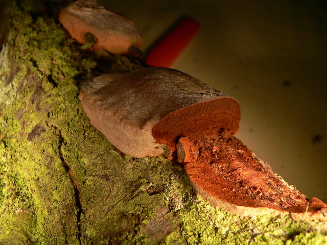 Und der Pilz, den ich am meisten fürchte, ist der zottige Schillerporling. Wenn ich so auf den alten, befallenen Bäumen herumturne um zu schneiden oder zu ernten, so droht mich der zu Fall zu bringen, wenn der Ast abbricht. Den Schillerporling hatte ich bisher nur an den Apfelbäumen.