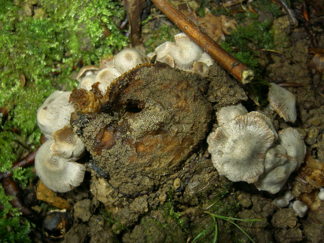 Das sieht doch nach dem Parasitischen Scheidling (Volvariella surrecta) aus, oder? Auf welchen Puizen kann der denn wachsen? Wer hat diesen Scheidling schon gefunden und auf was für "Leichen" war er denn fruktifiziert? Kann leider keine weiteren Angaben zum Bild machen, ausser dass ich im Raum Nürtingen/Kirchheim/Teck (B-Württ.) unterwegs war. Freue mich über Feedback! Gruß,
