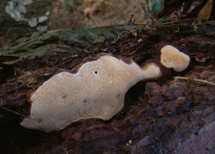... also, damit die Diskussion nicht allzu abstrakt bleibt, hier noch ein Foto des Wochenendfundes von Heterobasidion annosum, bei dem zwar alle Mikromerkmale stimmen, den ich aber in dieser makroskopischen Gestalt noch nicht gefunden habe. Und wenn man Niemelä & Korhonen 1998 folgt, müsste man ihn entsprechend des Substrats Pinus eigentlich H. parviporum nennen: