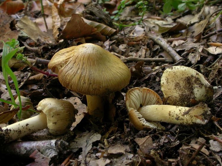 Zum Beispiel der Knollige Risspilz (Inocybe cookei), der in relativ feuchten Buchenwäldern auf ca. 1400 m recht häufig zu finden war: