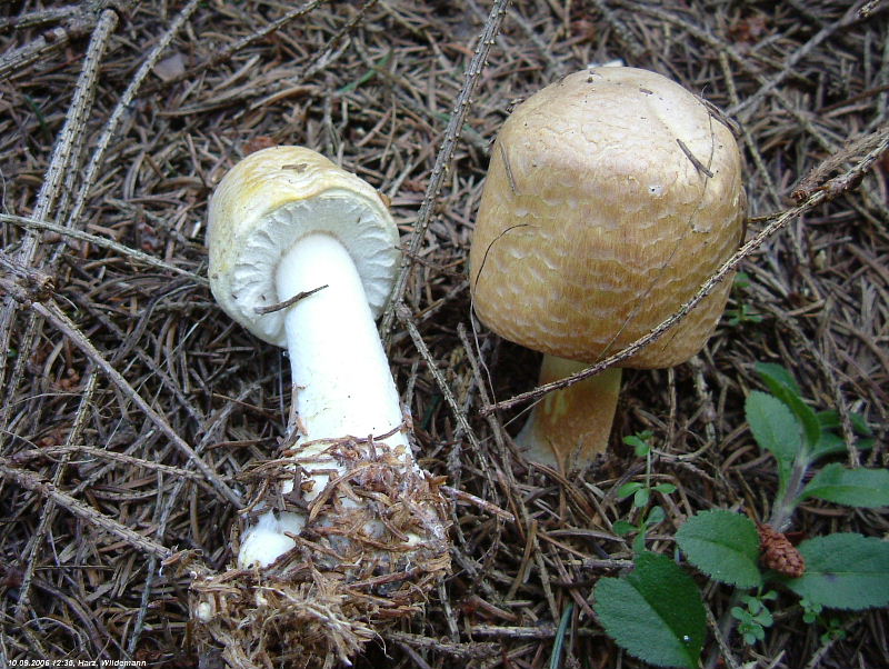 Hallo Forum, an dieser Kollektion brüte ich nun schon ewig, jetzt weiß ich nicht mehr weiter. Grundsätzlich denke ich, das diese Pilze zu der "Zahnradfraktion" bei den Champignons gehören sollten, aber die bis zum Schluß hellen Lamellen und das fehlende Gilben sprechen nach meinem Wissensstand dagegen. Der einzige Agaricus in meiner Literatur, der am nächsten kommt, wäre A. augustus, dagegen sprechen aber m. M. die schon erwähnten hellen Lammellen und auch der Stiel. Die von mir bisher gesichteten A. augustus sahen auch anders aus. In anderen Pilzgattungen bin ich auch nicht fündig geworden. HutØ des rechten Pilzes ca. 5 cm. Große Ratlosigkeit! Oder totale Blockade? Niedersachsen, Wildemann/Harz, 500 m, in angehäuften Fichtennadeln und Geäst an Baumfällstelle, Mitte September 2006. Viele Grüße,