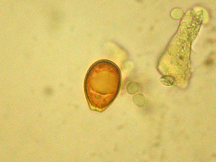 Thomas hat mir den inzwischen überreifen Pilz zur Untersuchung gebracht, es folgen die einstweiligen Ergebnisse.