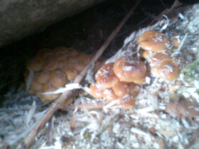 Hier meine eig Frage! Könnt ihr mir sagen ums was es sich hier für Pilze handelt?? Hab sie am 5.02.08 auf frischen Fichtenspähnen gefunden...