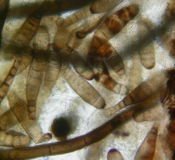 Substrat schaut ganz nach Rinde von Fichte aus (Ansätze der Nadeln). Habe die Art vor zwei Jahren in Südschweden (Skane, Röstanga, Söderasen) gehabt, zwischen Orbilia comma auf Innenseite von Ulmenrinde, feucht am Boden liegend. Konidien *50-70 x 12-14 µm. Bestimmt mit Ellis & Ellis. Zotto