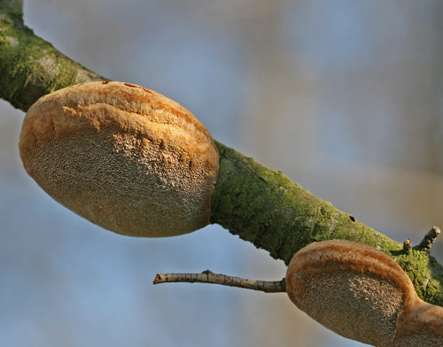 Diesen Pilz habe ich Ende Februar in meinem Garten an einer Blutpflaume entdeckt.