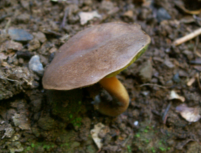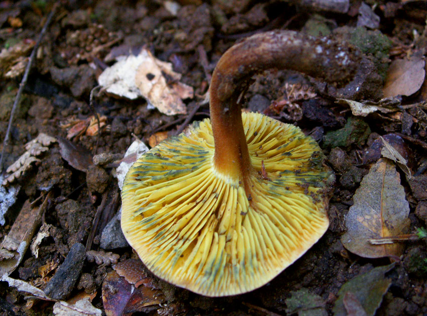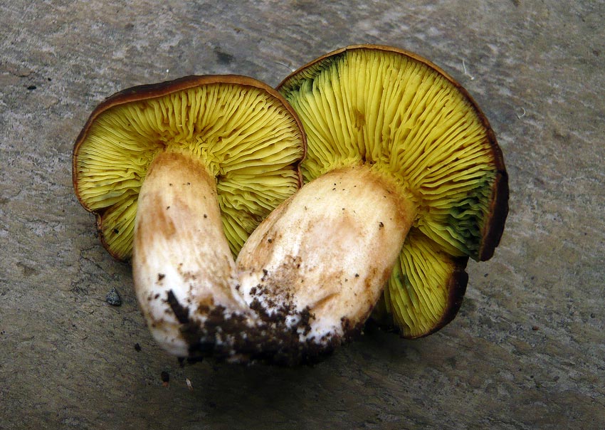 Der zweite Vertreter scheint eine Art Goldblatt zu sein, da ich Phylloporus pelletieri noch nicht gefunden habe, weiß ich auch nicht ob das Fleisch/Röhren "blauen" bzw. "grünen" darf. Meine Exemplare taten das nämlich.