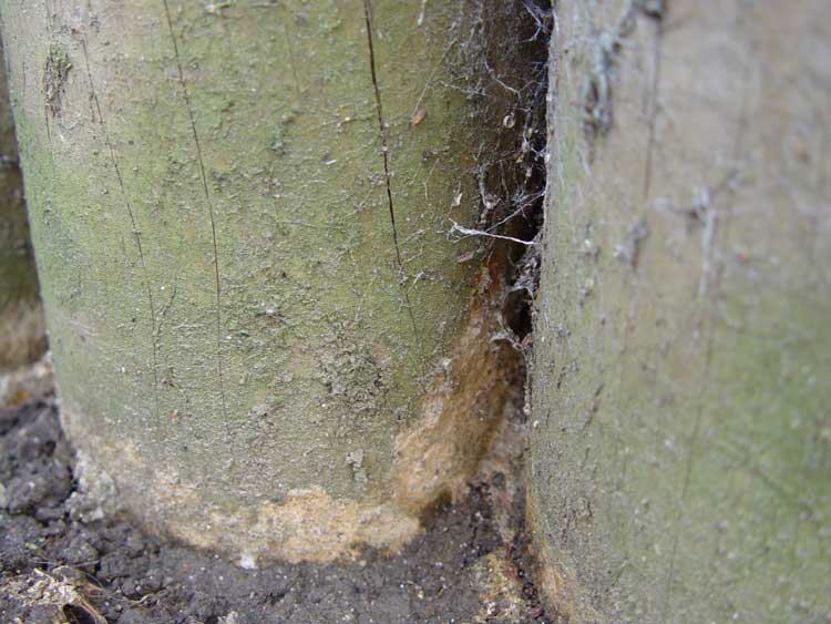 Hier seht Ihr 2 (von ca. 200) Holzpalisaden aus dem Baumarkt, mit denen der Bauherr, bzw. das von ihm beauftragte Unternehmen vor ein paar Jahren für die Erdgeschossbewohner seines Hauses zwei etwas erhöhte Terrassen abgefangen hat.