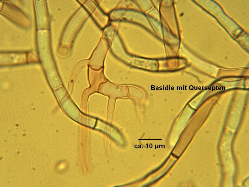 Wenn man etwas Zeit hat (und viele Deckgläschen), dann kann man diese Schneckenbasidien bei H. brebissonii schön sehen (im Gegensatz zu den extrem zähen Auricularias)!