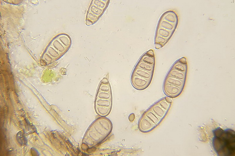 ich hab' gestern an und um Hypoxylon fuscum bräunliche, sternförmig angeordnete "Fäden" gefunden, die ich gerne Nodulisporium umbrinum (=Isaria umbrina) zuordnen würde. Finde allerdings nirgends eine mikroskopische Beschreibung dieser Art, wäre deshalb für mikroskopische Merkmale sehr dankbar. Ein Mikrofoto zum Vergleich von meinem Fund ist angehängt.