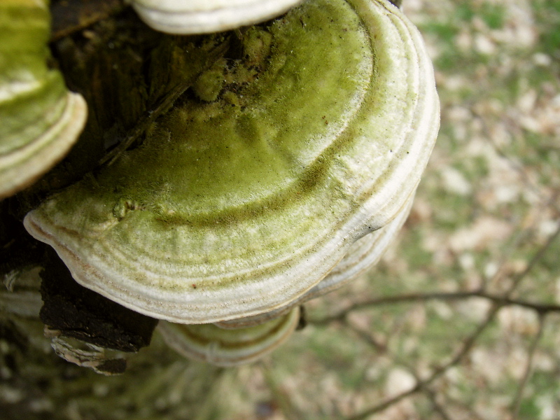 Wer bei diesem Foto gleich an Trameten denkt (so wie ich), wird wohl umdenken müssen, wenn er gleich das zweite Foto mit der Unterseite der Baumpilze sieht. Denn die Striegelige Tramete (Trametes hirsuta) ist es nicht.