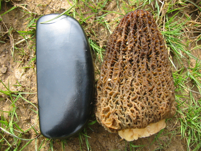 ...war diese Riesenspitzmorchel.Zum einen wegen ihrer Größe und zum anderen thronte sie oben auf einem Mulchhaufen ( wobei ich leider die Kamera nicht dabei hatte ).Als Vergleich : mein Brillenetui ist 16 cm lang.