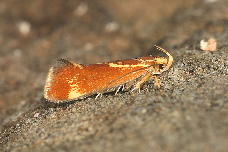Guten Tag Vor einem Monat bat ich um die Bestimmung einiger Stockpilze, in welchen ich Raupen eines Mikroschmetterlings gefunden hatte ( http://www.pilzepilze.de/cgi-bin/webbbs/pconfig.pl?read=136560 - 31. März 2008). In der vergangenen Nacht ist der erste Falter geschlüpft und hat seine Identität damit preisgegeben. Es ist ein Vertreter aus der Familie der Oecophoridae (Faulholzmotten): Metalampra cinnamomea. Der Falter ist (so wie er hier sitzt) 7 mm lang. Wie versprochen stelle ich jetzt auch die Bilder dieses Tierchens hier ins Pilzeforum. Nochmals herzlichen Dank für die Bestimmungshilfe. Ein schönes Himmelfahrtswochenende wünscht Ruedi Bryner