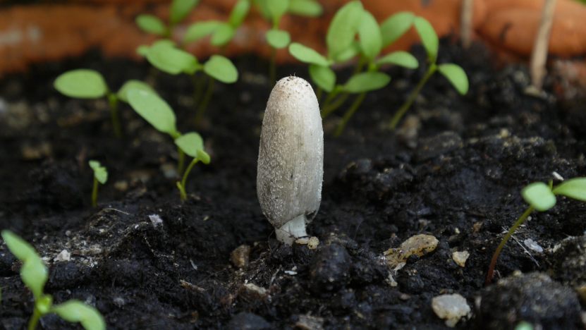 Und siehe da, hier gibt es Pilze, zwischen jugendlichem Schleierkraut,