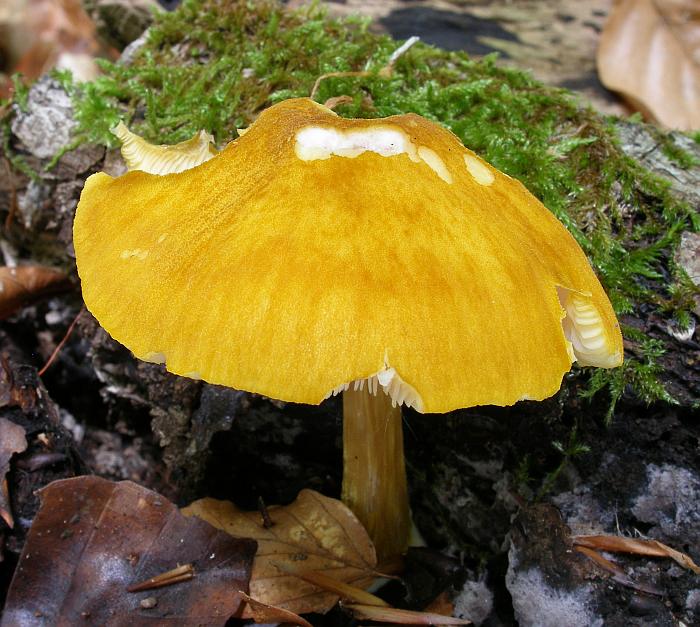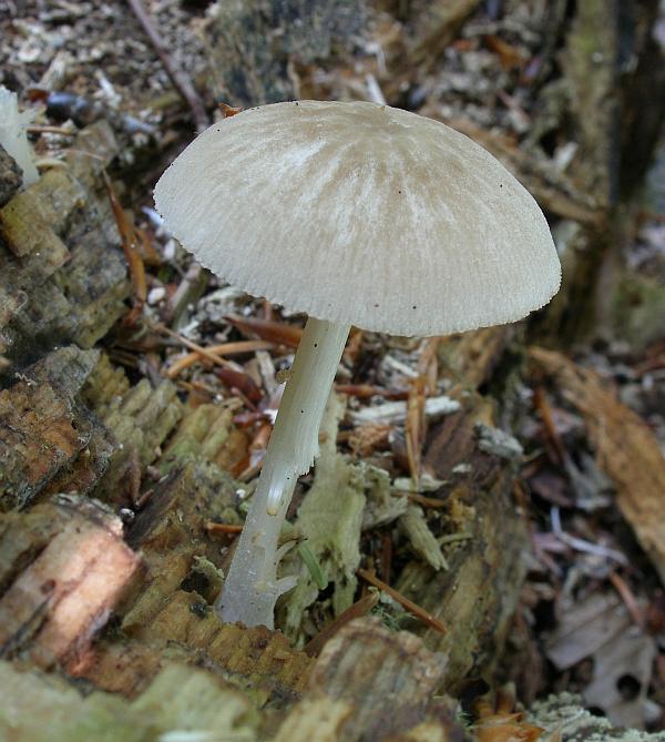Glatter weisser Stiel, Lamellen rein weiß, dichtgedrängt