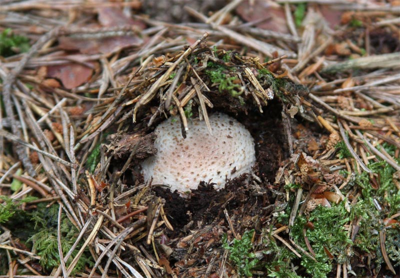 Die ersten Perlpilze stossen mit ihren Köpfchen aus dem Boden