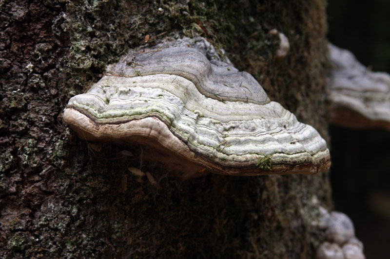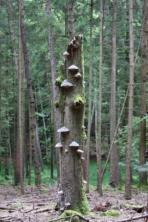 An alten abgestorbenen Buchenstämmen gedeihen die Zunderschwämme