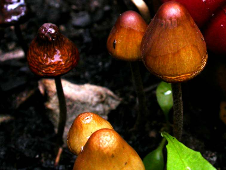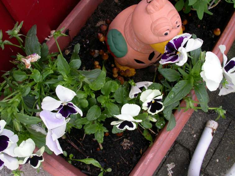 Wie gesät standen in einem Blumentrog diese Pilze unter Stiefmütterchen: