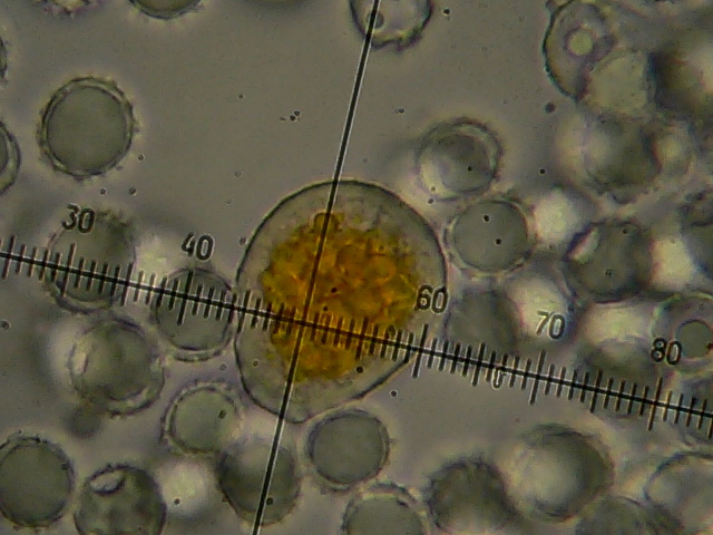 Was sich da zwischen welchen (Russula-)Sporen tummelt, weiß ich auch nicht. Habe es von einem alten Sporenabwurf abgekratzt.
