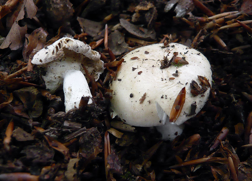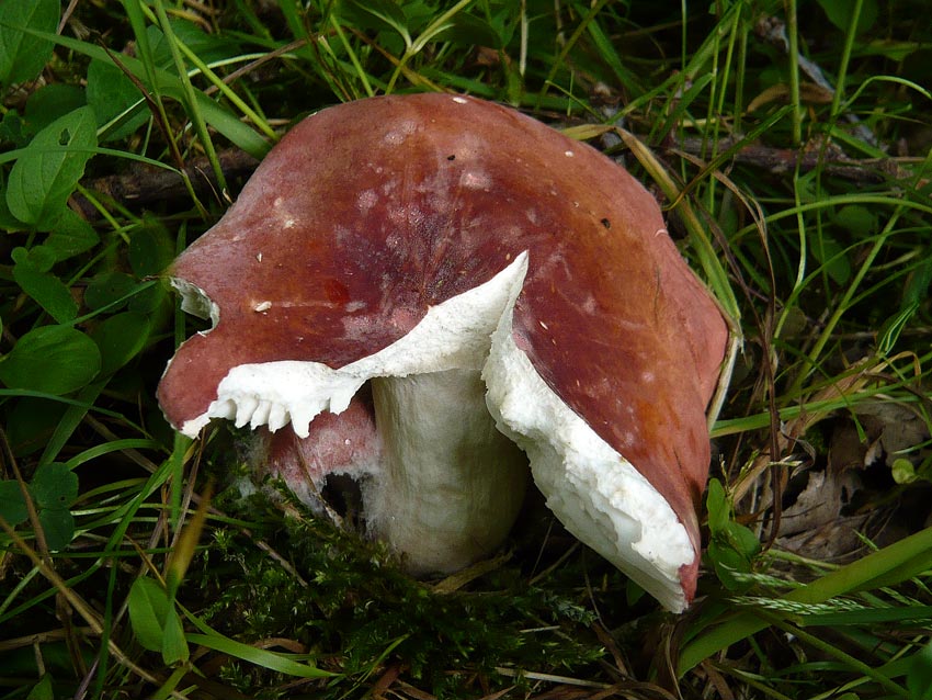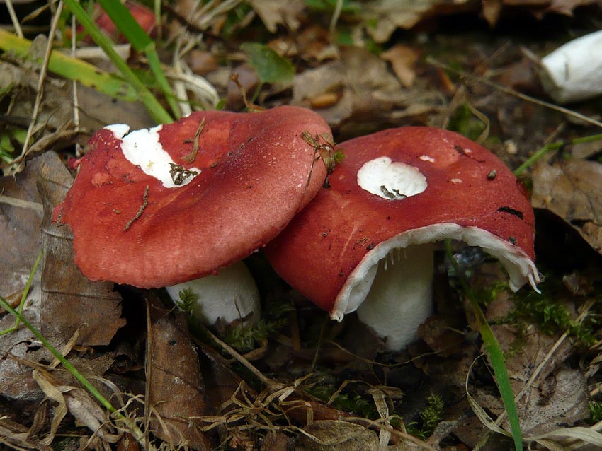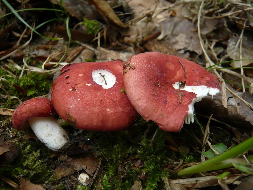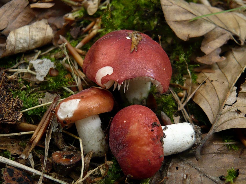 Dann hatten wir das Glück ganze 4 Vertreter der sehr seltenen Weißsporer aus der Untersektion Lilacinae zu finden: Russula emeticicolor - Kleiner Zinnober-Täubling